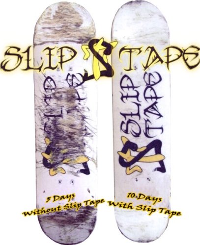 Clear, protects your decks graphics, and is self lubricating for those WILD huge deck slides. You would not believe the results this easy to apply film will give. After 5 days of skate park use, most decks look totaled. They are splintering and the paint is smudged beyond recognition, while after 10 days of use, the slip tape treated deck looks unscathed, not to mention the huge moves it produced. Slip Tape stiffens the board, giving the big air pop the pros love and may save your deck in the case of a hard impact. The secrete lays with in the polymers super dense molecular construction, witch amounts to no rips or tares in the film, for an always smooth and slippery surface that will last. So stop waxing, and start skating with Slip Tape. Your board will look good as new even after wild stunts. Slip Tape DRASTICLY Enhances Your Performance Super Fast. Extra Long, Smooth Board Slides Self Lubricating Protects Graphics Applies Easily, Just Like Grip Tape For the Bottom Of You Deck! Light Weight Eliminates Need To Wax And Lubricate Strengthens Your Deck. Will Save You Money By Increasing Your Decks Life.